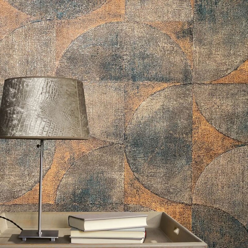 Papel pintado estilo industrial semicírculos marrón azul