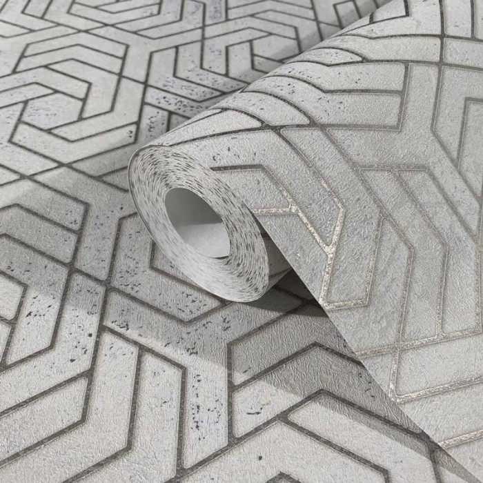 Papel pintado efecto 3D gris hormigón y dibujos dorado metalizado. Vendido por rollo, medidas: 53 cm x 10 metros