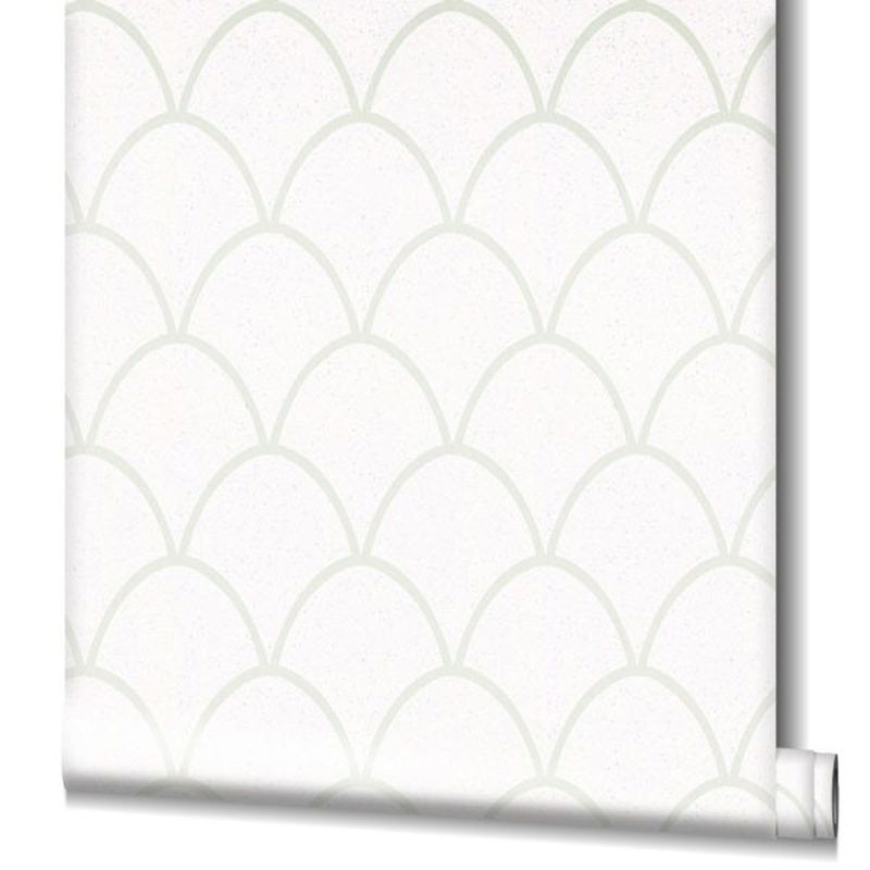 Papel pintado blanco diseño art deco moderno con brillo de purpurina. Vendido por rollo, medidas: 53 cm x 10 metros