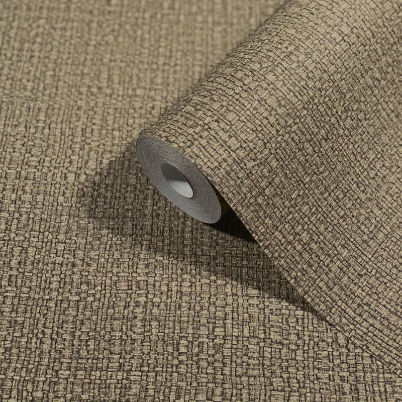 Papel pintado tela natural marrón cálido y acogedor de Rasch, colección Kimono. Calidad vinílico lavable, medidas: 53 cm x 10 metros