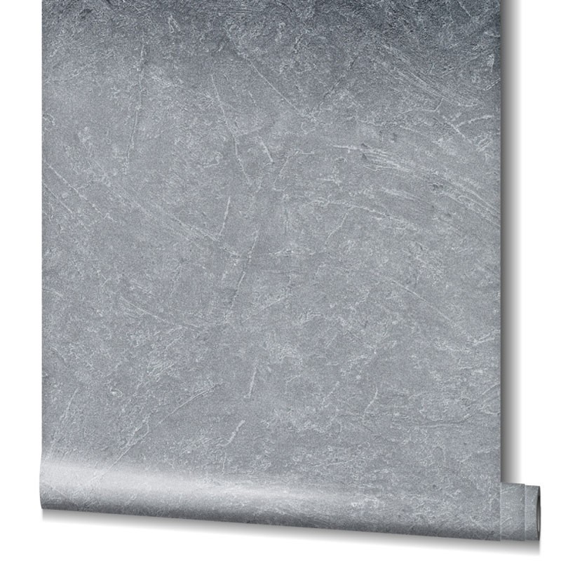 Papel pintado industrial con textura efecto yeso plateado brillo
