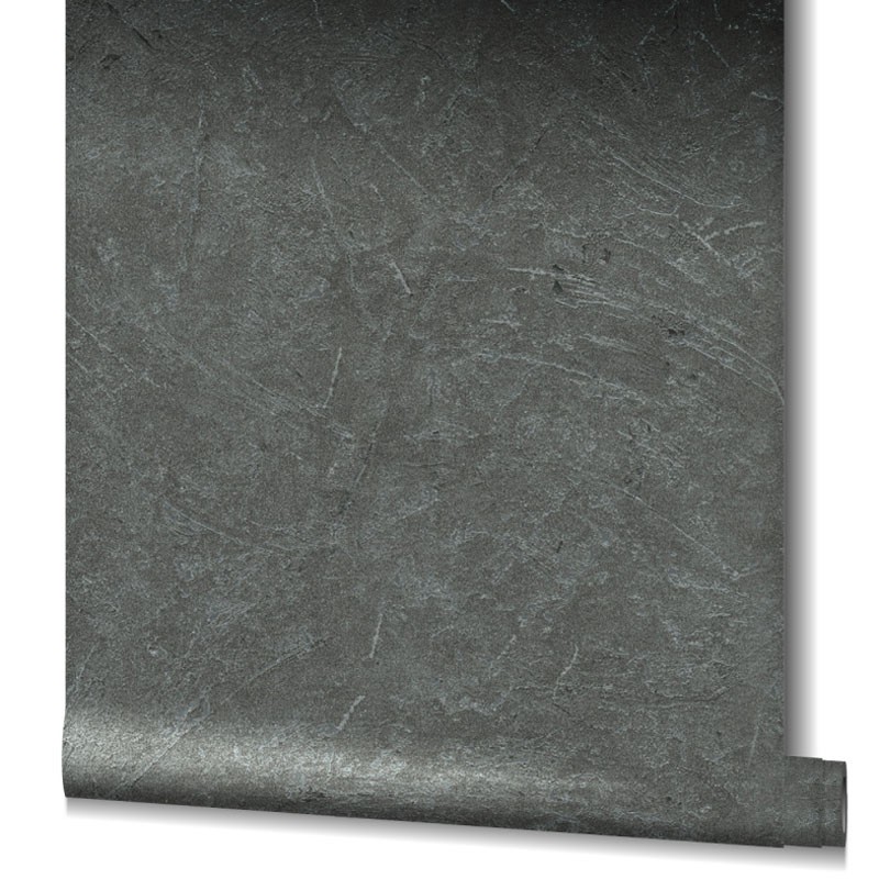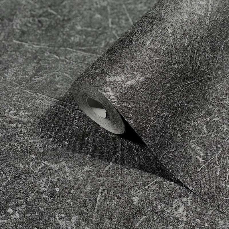 Papel pintado efecto pared de yeso con textura negro brillo. Vendido por rollo, medidas: 53 cm x 10 metros