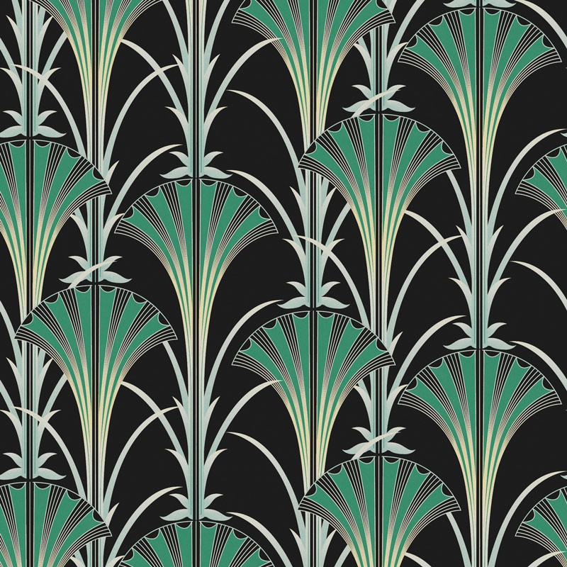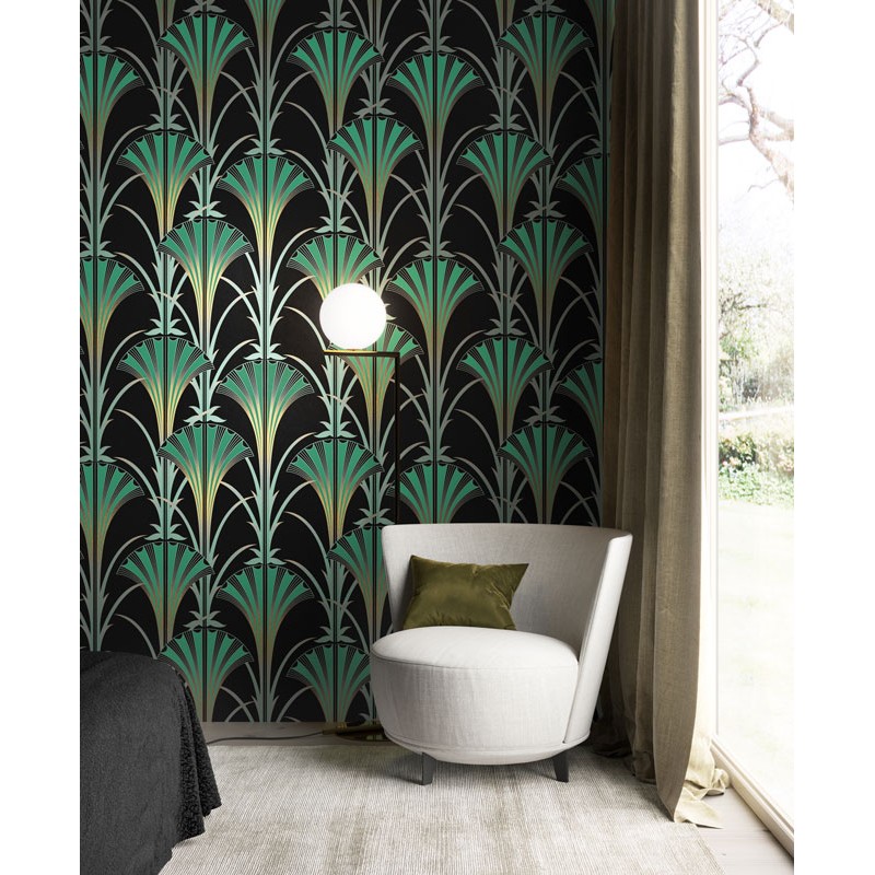 Papel Pintado Art Deco plateado metalizado de Khroma, colección Agathe. Calidad tejido no-tejido lavable, medidas: 53 cm x 10 m.