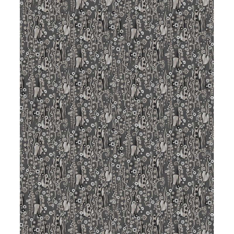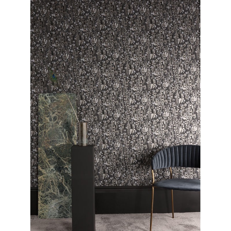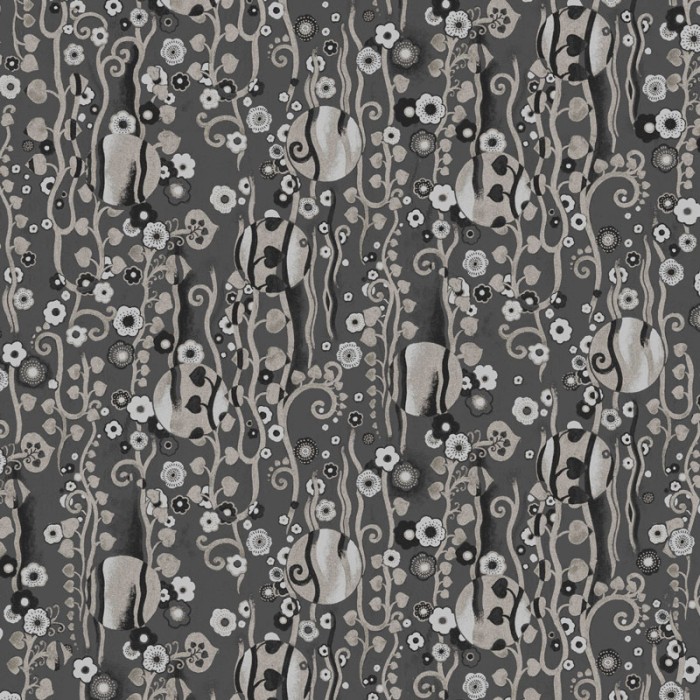 Papel Pintado flores y círculos metálicos gris y negro de Khroma, colección Agathe. Calidad tejido no-tejido lavable, medidas: 53 cm x 10 m.