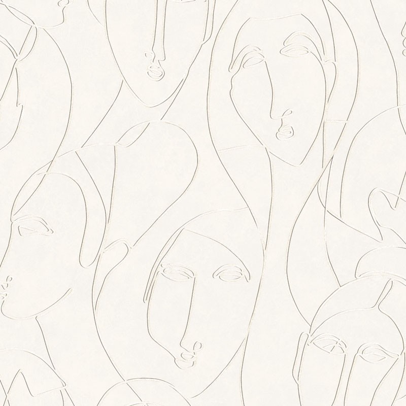 Papel Pintado rostros egipcios beige, gris y dorado con brillo de Khroma, colección Agathe. Calidad tejido no-tejido lavable, medidas: 53 cm x 10 m.
