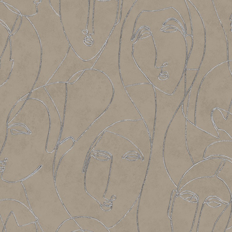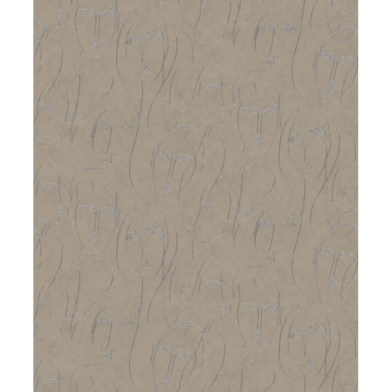 Papel Pintado rostros egipcios marrón y plata brillante de Khroma, colección Agathe. Calidad tejido no-tejido lavable, medidas: 53 cm x 10 m.