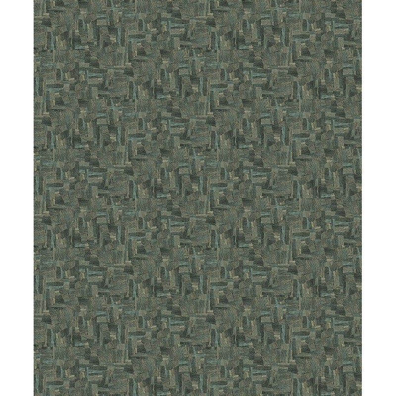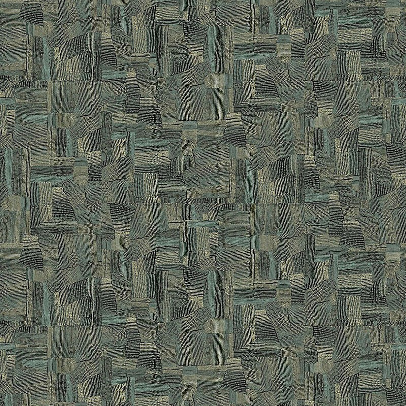 Papel Pintado abstracto verde con retales textiles de Khroma, colección Kimono. Calidad tejido no-tejido lavable, medidas: 53 cm x 10 m.