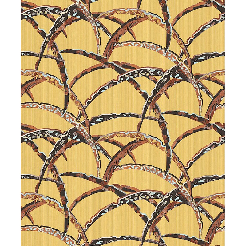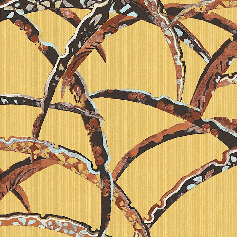 Papel Pintado oriental con chiles fondo amarillo de Khroma, colección Kimono. Calidad tejido no-tejido lavable, medidas: 53 cm x 10 m.