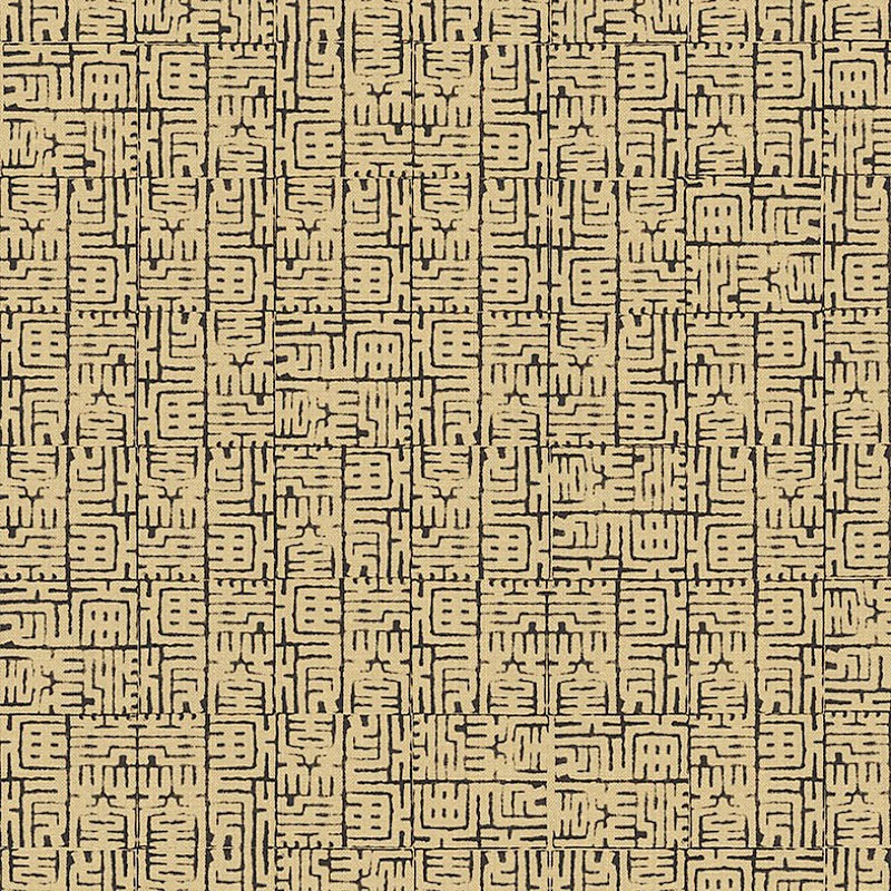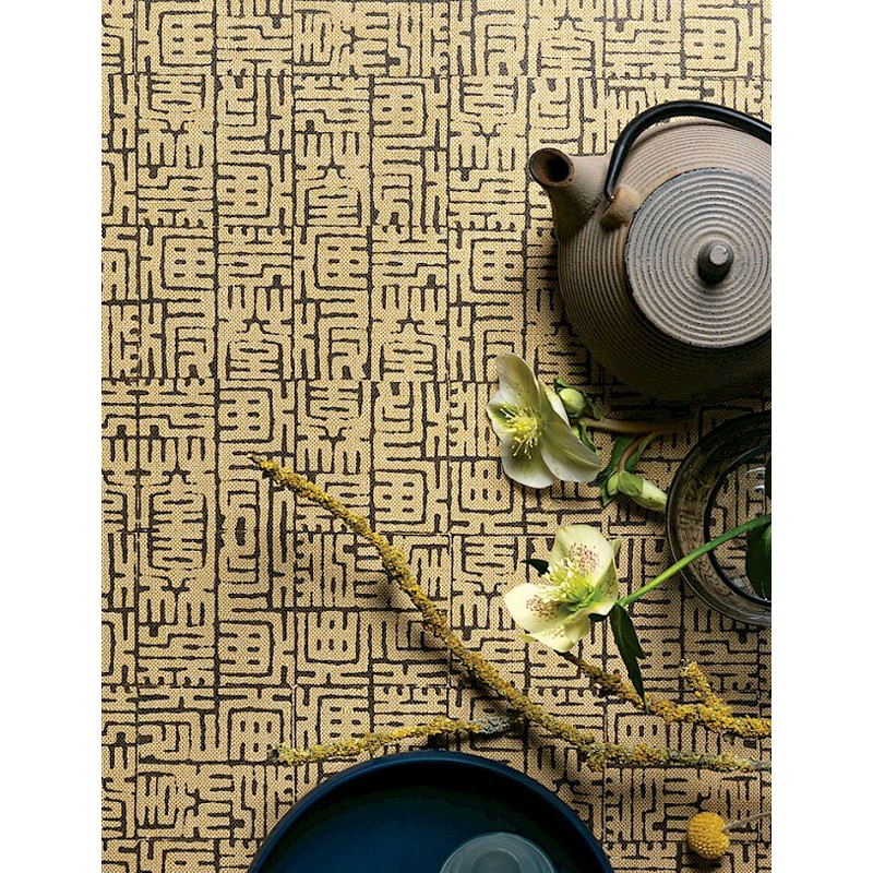 Papel Pintado oriental laberinto amarillo ocre de Khroma, colección Kimono. Calidad tejido no-tejido lavable, medidas: 53 cm x 10 m.