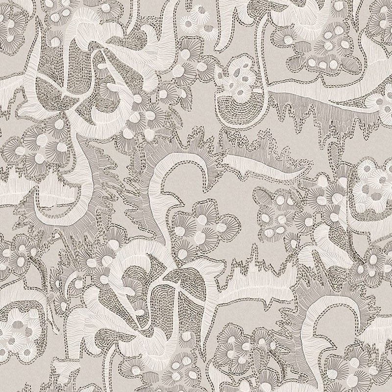 Papel pintado flores grandes azul efecto textil, una opción luminosa y suave para interiores con inspiración botánica.