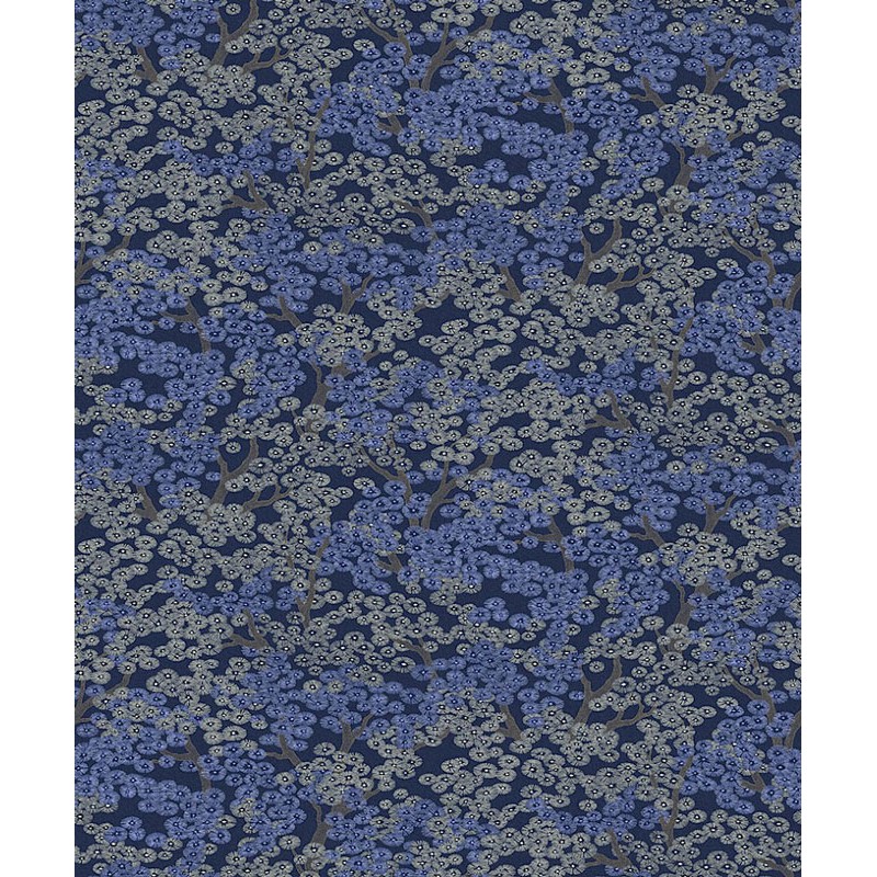 Papel pintado flores pequeñas estilo oriental fondo azul. Papel de pared calidad tejido no tejido lavable. Medidas: 53 cm x 10 metros