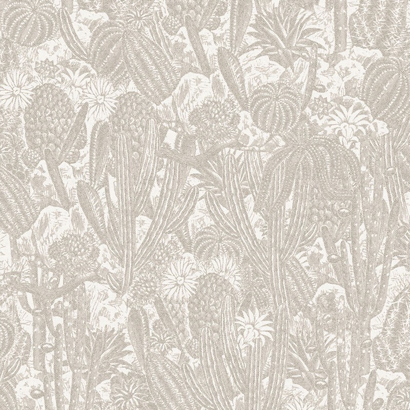Papel Pintado cactus en relieve tonos beige de Khroma, colección Havana. Calidad tejido no-tejido lavable, medidas: 53 cm x 10 m.