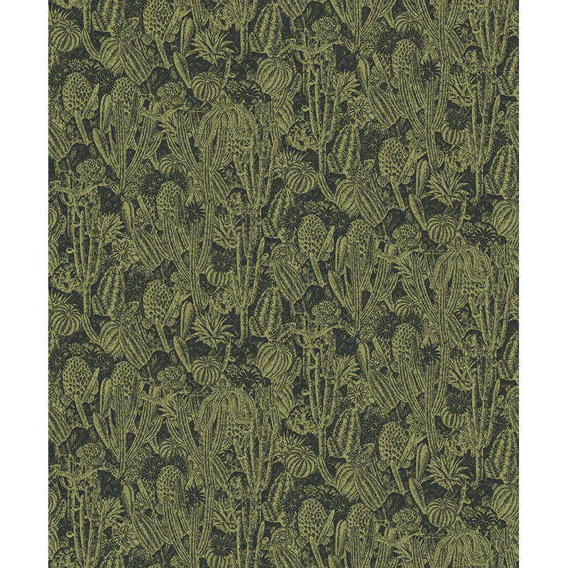 Papel Pintado cactus verdes con dorados metalizados de Khroma, colección Havana. Calidad tejido no-tejido lavable, medidas: 53 cm x 10 m.