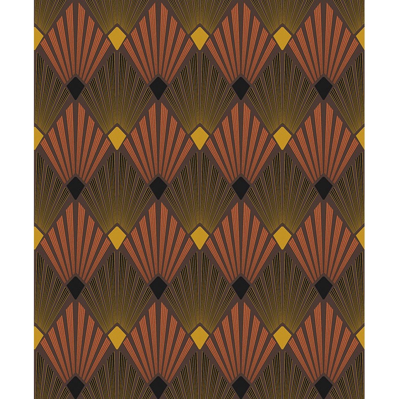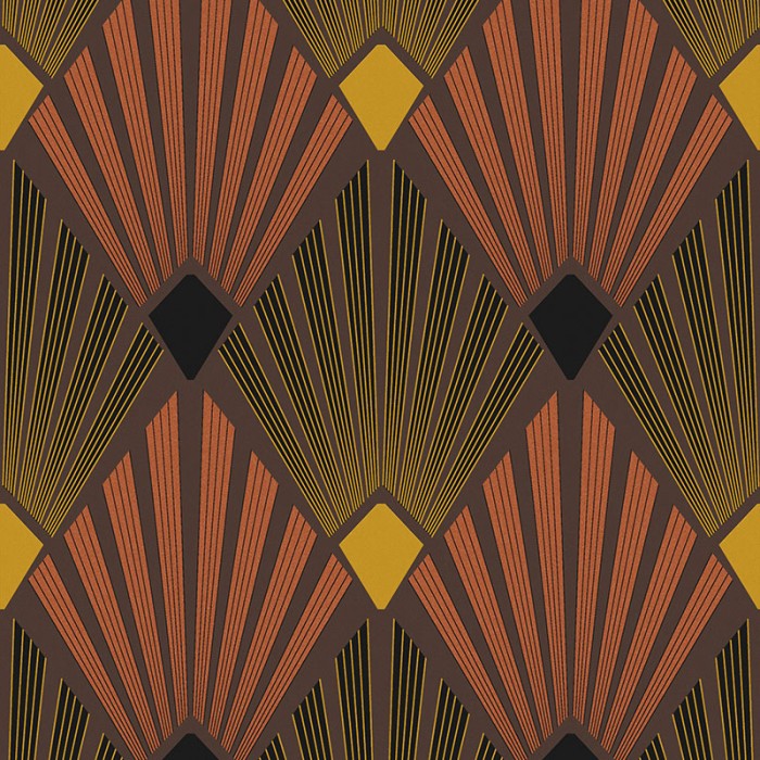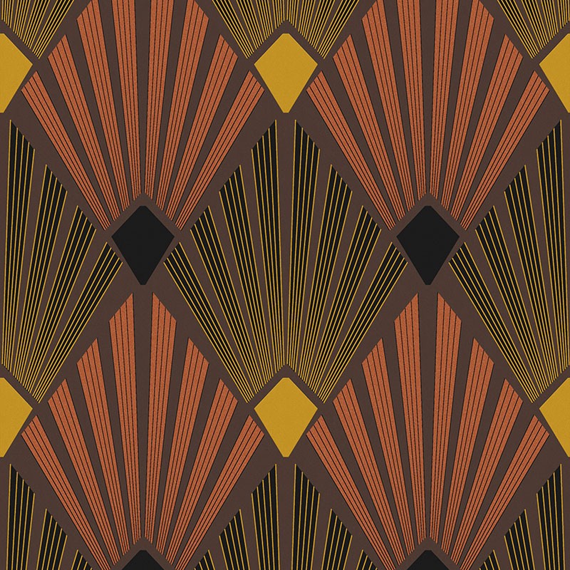 Papel Pintado abanicos Art Deco marrón con detalles metalizados
