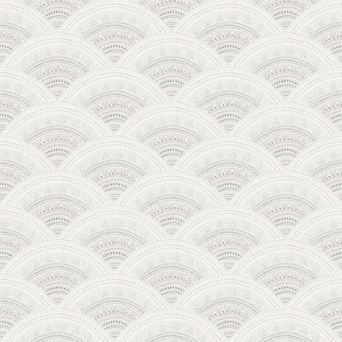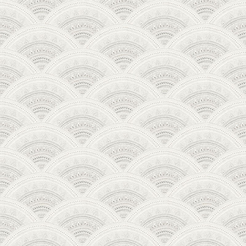 Papel Pintado abanicos blancos con brocado champán metalizado de Khroma, colección Bahia. Calidad tejido no-tejido lavable, medidas: 53 cm x 10 m.