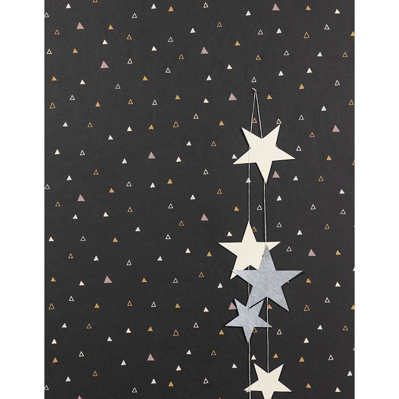 Papel Pintado infantil negro con triángulos rosa y ocre