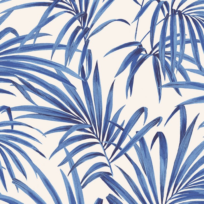 Papel Pintado acuarela azul con hojas de palma y fondo beige de Khroma, colección Lotus. Calidad tejido no-tejido lavable, medidas: 53 cm x 10 m.