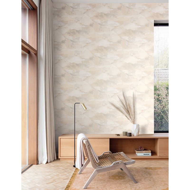 Papel Pintado nubes acuarela beige arena pastel de Khroma, colección Lotus. Calidad tejido no-tejido lavable, medidas: 53 cm x 10 m.