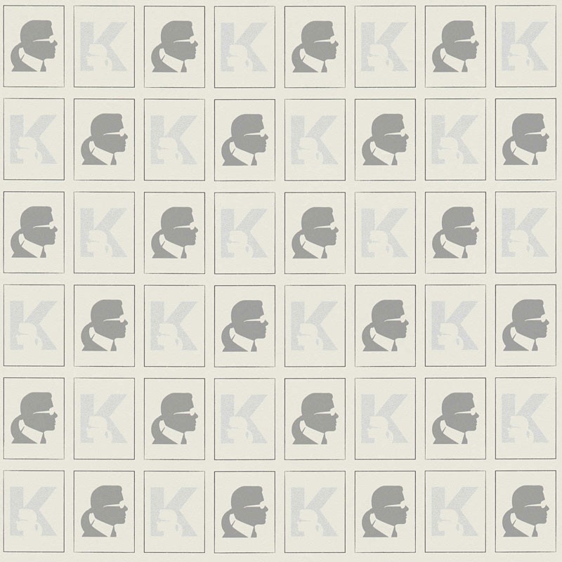 Inspirado en la decoración actual, destaca por su autenticidad. Papel Pintado logotipo Karl Lagerfeld gris y negro As Creation Karl Lagerfeld 378424.