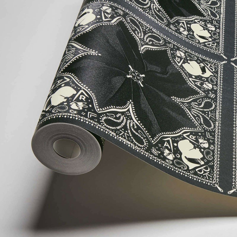 Papel Pintado negro motivos bordados de Karl Lagerfeld, Una solución elegante para renovar tus paredes con estilo. As Creation Karl Lagerfeld 378453.