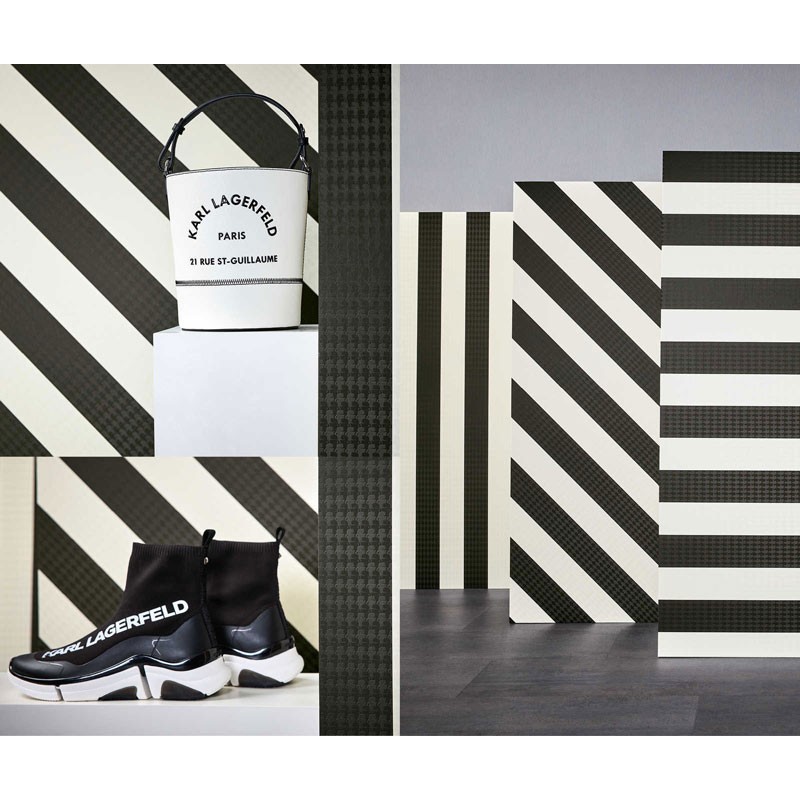 Inspirado en la decoración actual, destaca por su autenticidad.. Papel Pintado rayas anchas con logo Karl Lagerfeld As Creation Karl Lagerfeld 378492.