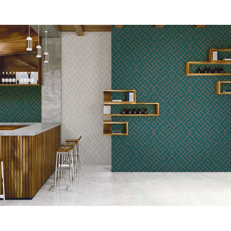 Papel pintado efecto pared celeste. Caselio Ceramique, papel de pared calidad tejido no tejido lavable. Medidas: 53 cm x 10 metros