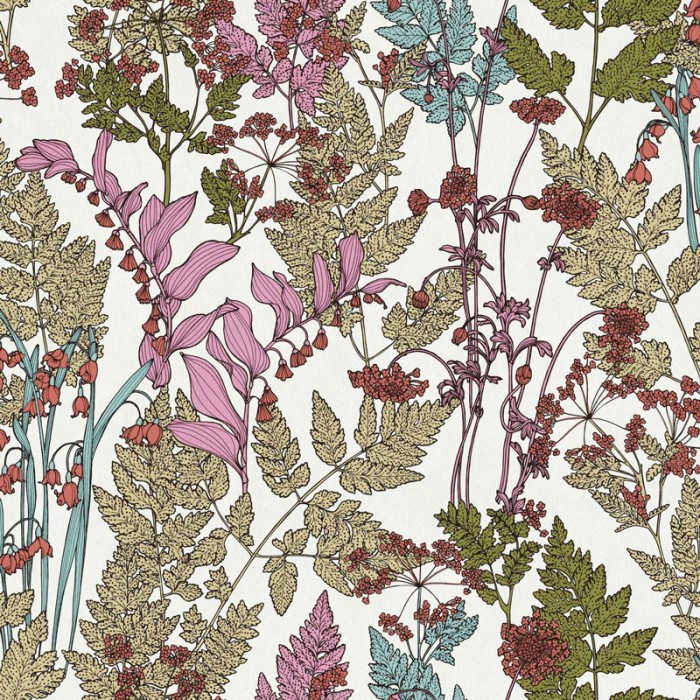 Papel pintado floral alegre estilo escandinavo blanco, verde y rosa, luminoso y moderno con aire nórdico. Architects Paper Floral Impresion, papel de pared calidad tejido no tejido lavable. Medidas: 53 cm x 10 metros