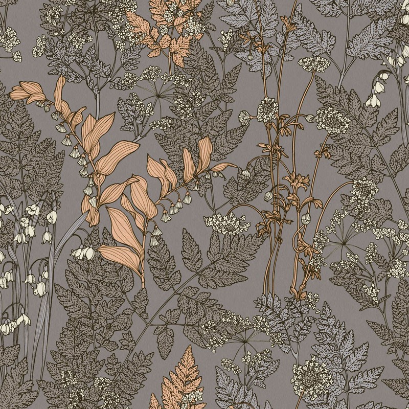 Papel pintado floral gris con un toque moderno, elegante y sobrio con aire decorativo. Architects Paper Floral Impresion, papel de pared calidad tejido no tejido lavable. Medidas: 53 cm x 10 metros