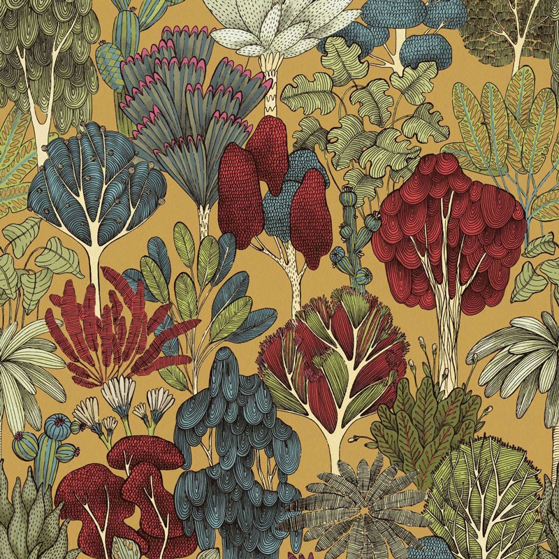 Papel pintado árboles dibujados tonos gris beige, sobrio y natural con un estilo sereno. Architects Paper Floral Impresion, papel de pared calidad tejido no tejido lavable. Medidas: 53 cm x 10 metros