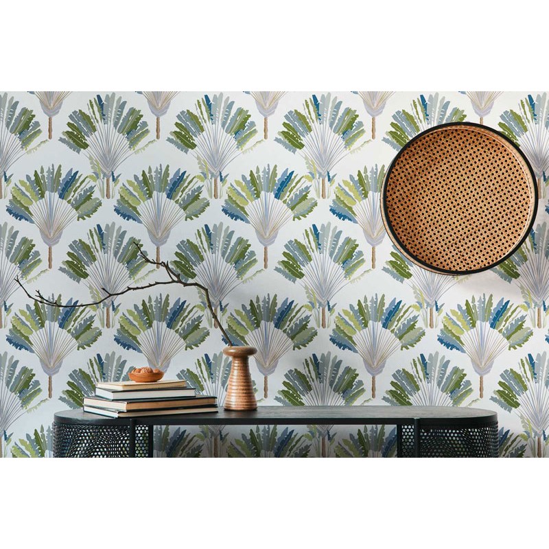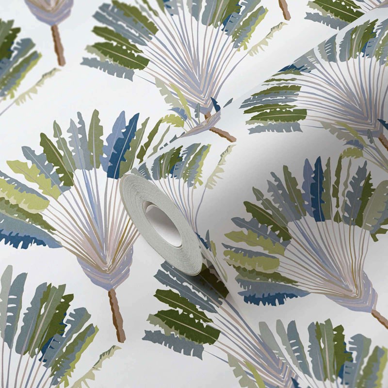 Papel pintado palmeras beige y gris, fresco y suave con inspiración tropical. Architects Paper Jungle Chic, papel de pared calidad tejido no tejido lavable. Medidas: 53 cm x 10 metros
