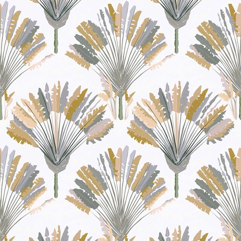 Papel pintado palmeras beige y gris, fresco y suave con inspiración tropical. Architects Paper Jungle Chic, papel de pared calidad tejido no tejido lavable. Medidas: 53 cm x 10 metros