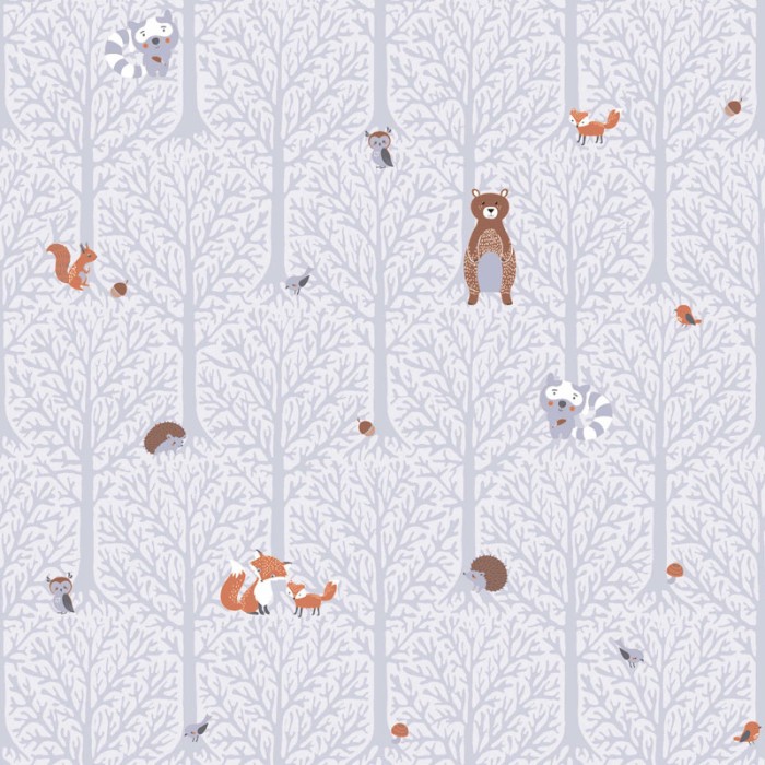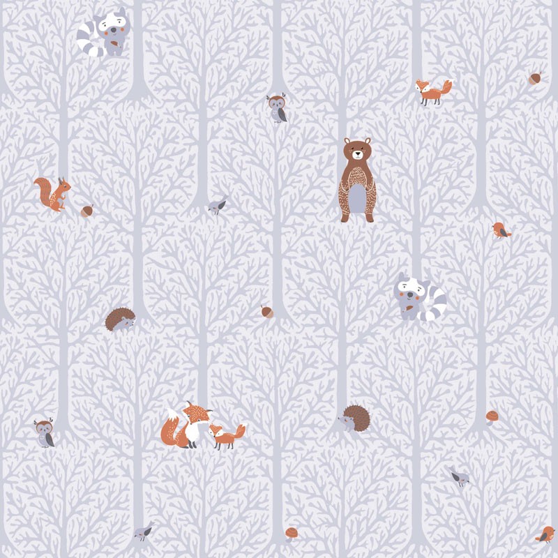Papel Pintado infantil bosque animales fondo gris, Estilo decorativo que se adapta a distintos espacios del hogar. As Creation Little Love 381202.