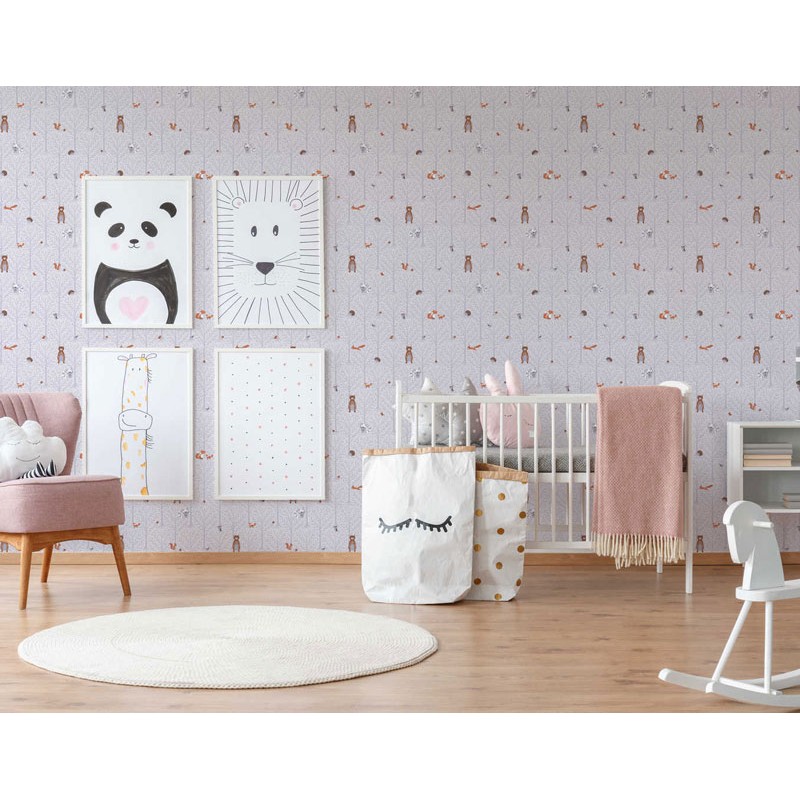 Perfecto para interiores que buscan calidez y estilo. Papel Pintado infantil rosa animales bosque As Creation Little Love 381203.