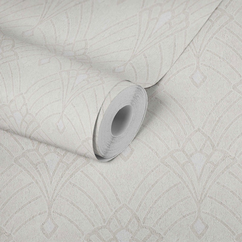 Papel Pintado Art Deco textura de yeso blanco crema, Añade carácter a tus estancias con este diseño versátil. As Creation Mata Hari 380941.