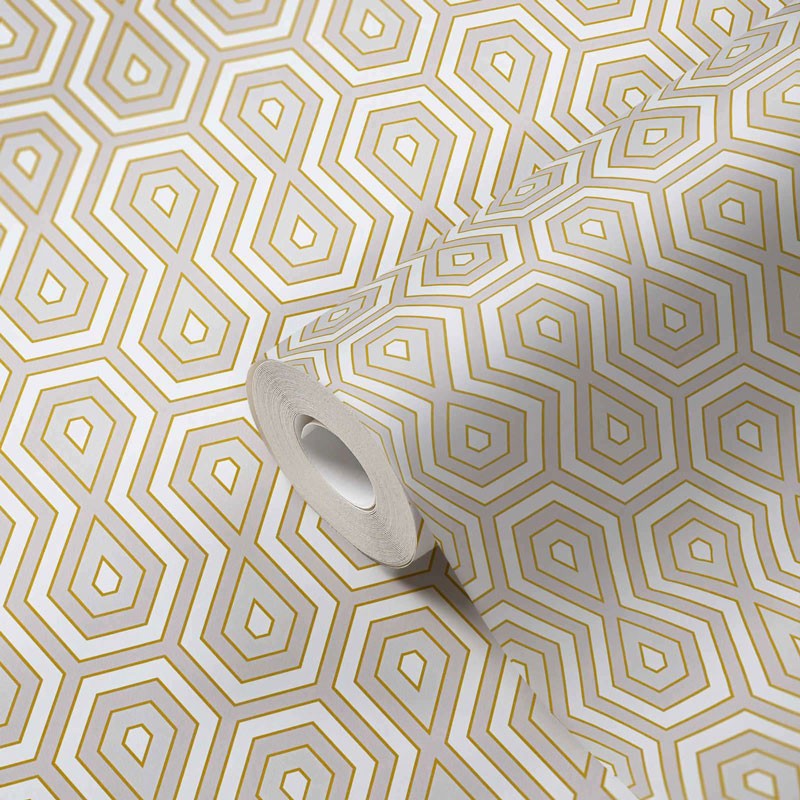 Papel pintado retro moderno beige y dorado. Vendido por rollo, medidas: 53 cm x 10 metros