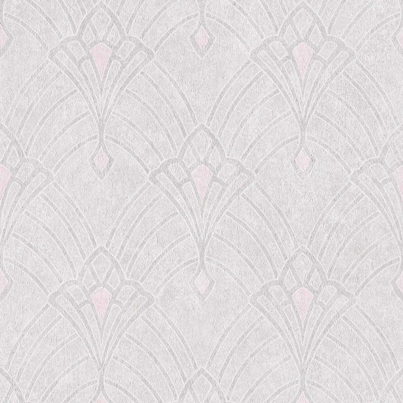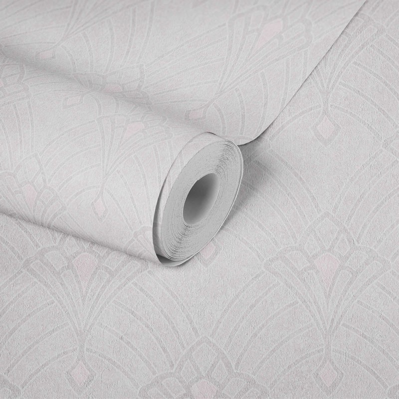 Papel pintado diseño Art Deco con textura de yeso blanco crema. Vendido por rollo, medidas: 53 cm x 10 metros