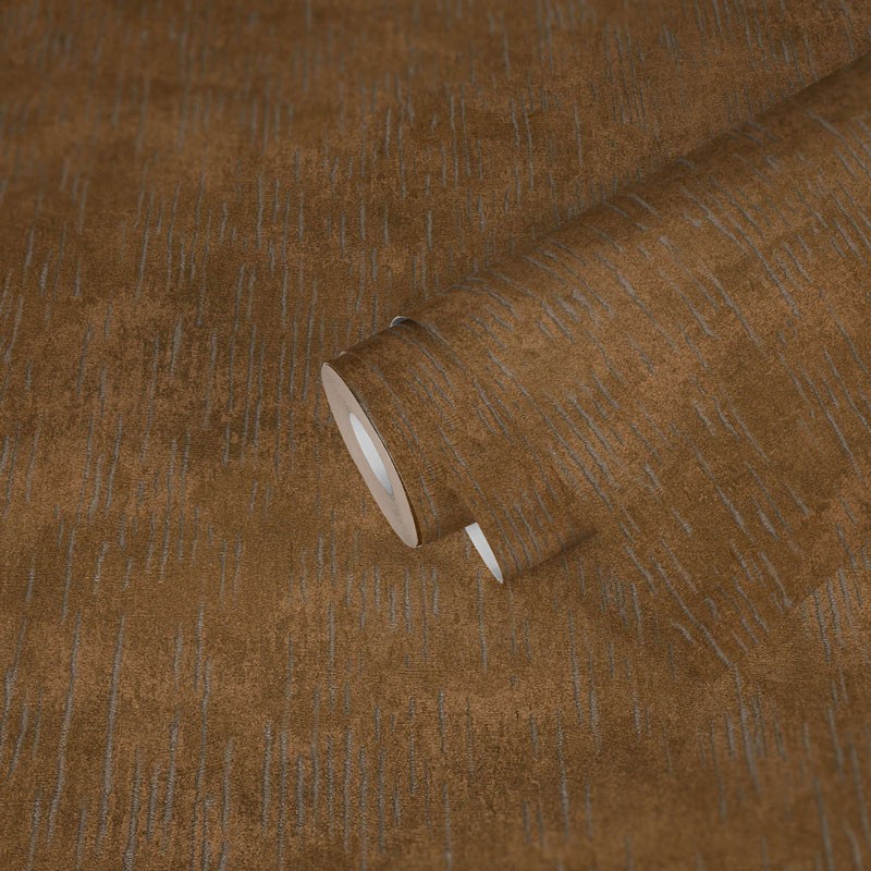 Papel pintado color óxido texturizado y detalles metalizados. Vendido por rollo, medidas: 53 cm x 10 metros