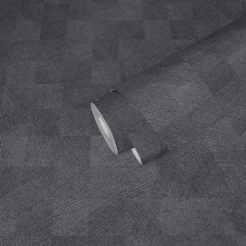 Papel pintado moderno con cuadros gris oscuro efecto brillo. Vendido por rollo, medidas: 53 cm x 10 metros