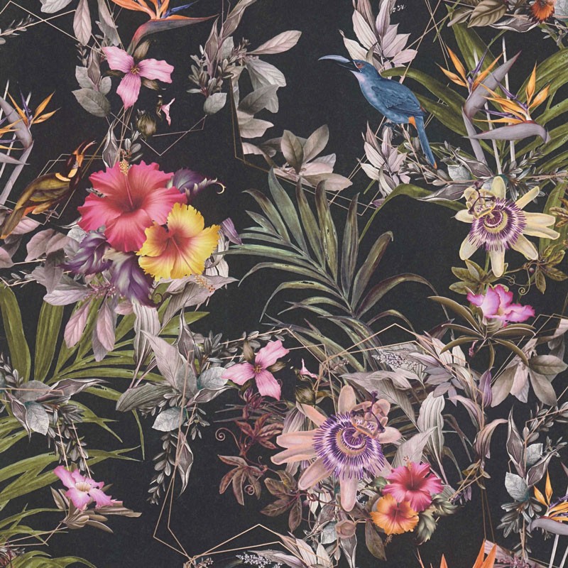 Perfecto para interiores que buscan calidez y estilo.. Papel Pintado floral con magnolias y fondo negro As Creation Dream Flowery 381781.