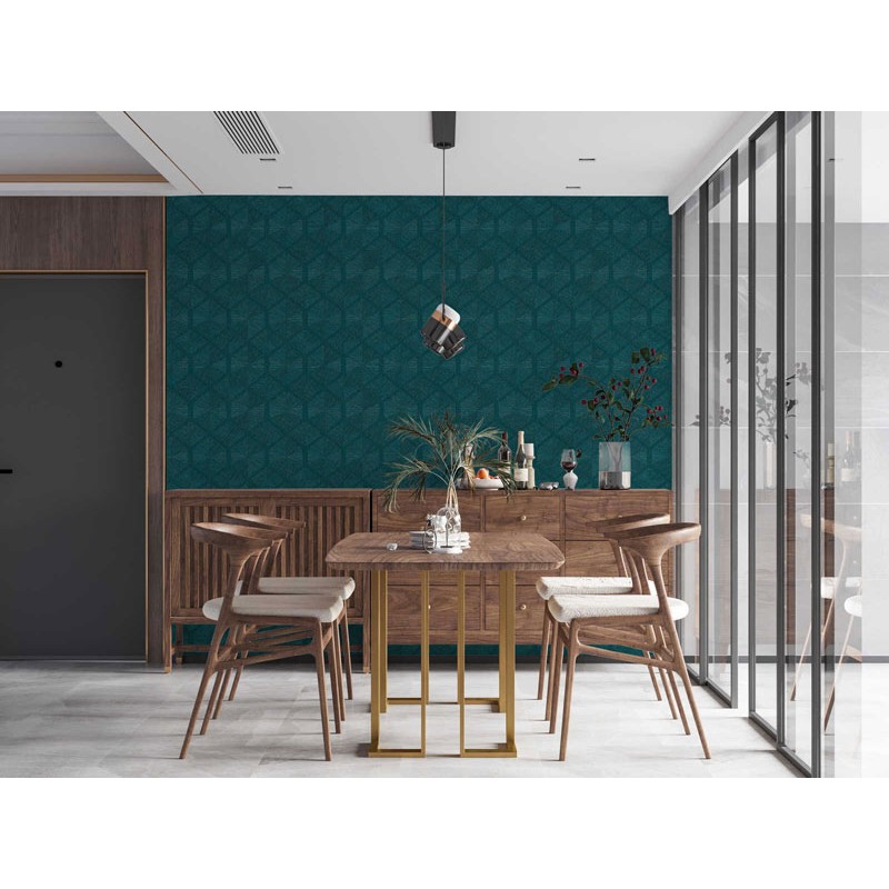 Papel Pintado metalizado azul petróleo geométrico, Una propuesta decorativa para espacios con personalidad. As Creation My Home My Spa 386901.