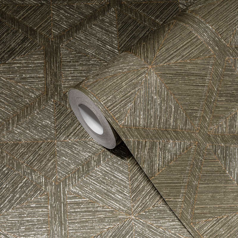 Añade carácter a tus estancias con este diseño versátil.. Papel Pintado geométrico metalizado marrón dorado As Creation My Home My Spa 386904.