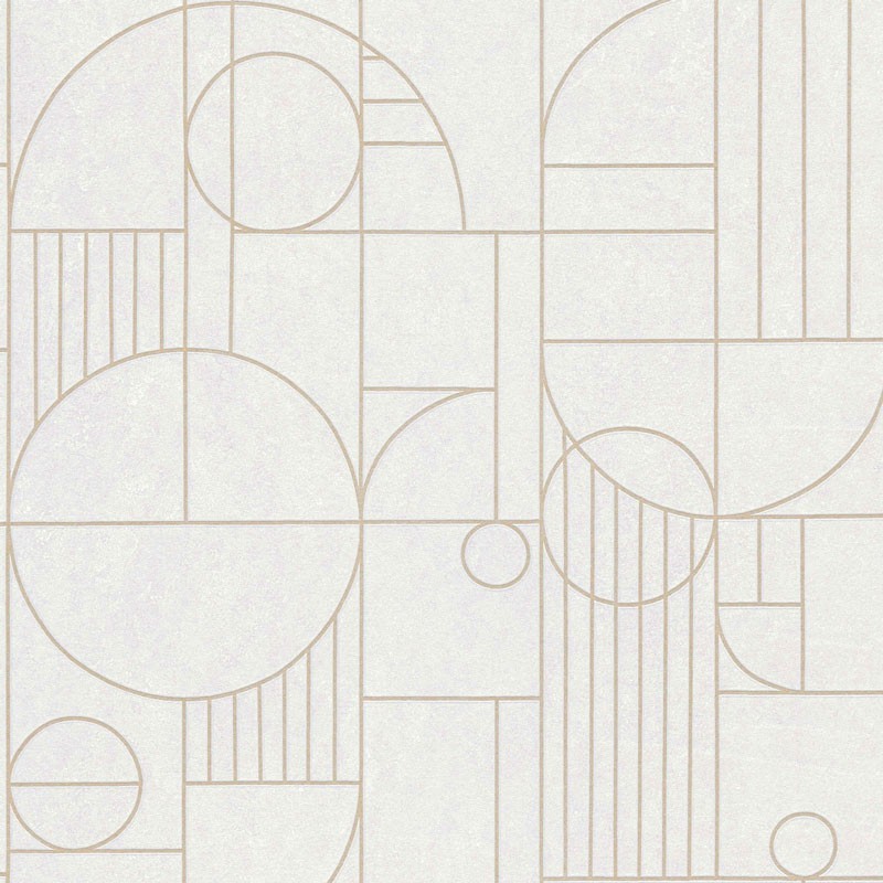 Inspirado en la decoración actual, destaca por su autenticidad. Papel Pintado moderno estilo Art Deco blanco y dorado As Creation My Home My Spa 386992.