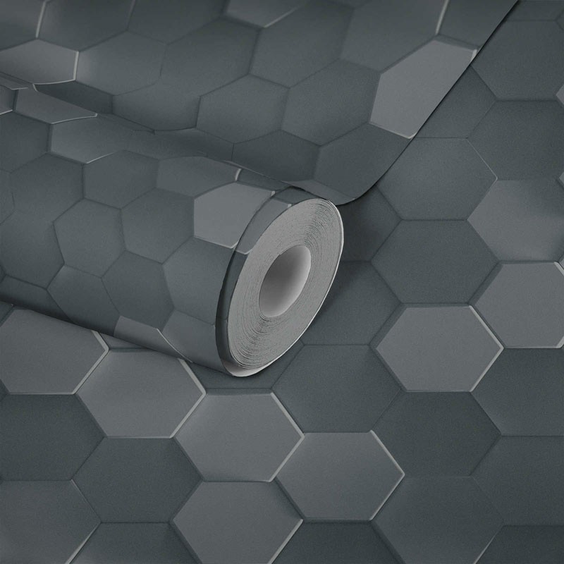 Una propuesta decorativa para espacios con personalidad. Papel Pintado efecto 3D gris y negro formas geométricas As Creation Pintwalls 387233.