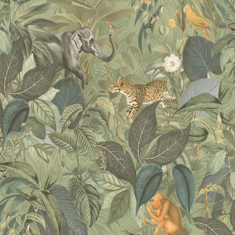Wallpaper tropical jungle with animals, An elegant solution to renovate your walls with style. As Creation Pintwalls 387242.