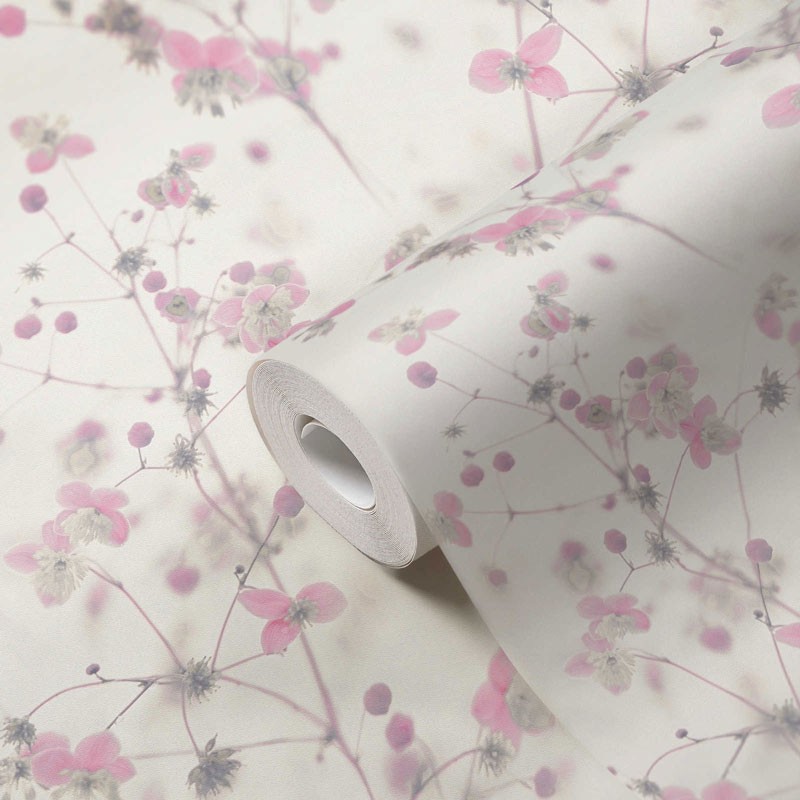 Perfecto para interiores que buscan calidez y estilo.. Papel Pintado flores pequeñas rosas y grises As Creation Pintwalls 387264.