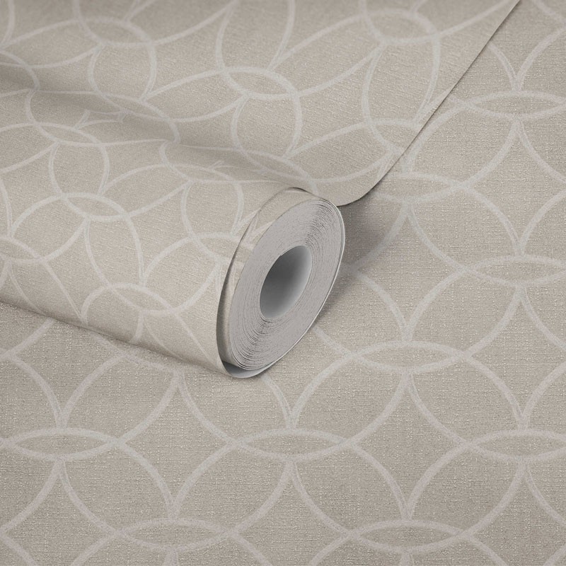 Papel pintado moderno de círculos gris efecto brillo, actual y versátil con un toque elegante. Architects Paper Villa, papel de pared calidad tejido no tejido lavable. Medidas: 53 cm x 10 metros