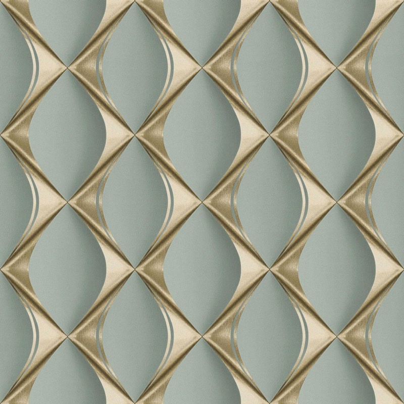 Papel Pintado 3D verde dorado brillo. Ideal para lograr estilo moderno y diseño sofisticado. Papeldecor 222-3330
