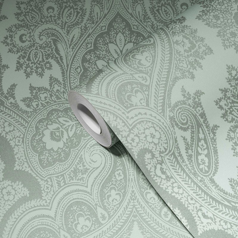 Papel Pintado damasco beige dorado brillante. Ideal para lograr estilo clásico y diseño refinado. Papeldecor 222-3357