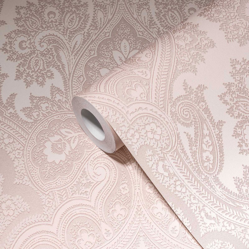 Papel Pintado damasco rosa boho brillante. Ideal para lograr estilo bohemio y paredes llamativas. Papeldecor 222-3361