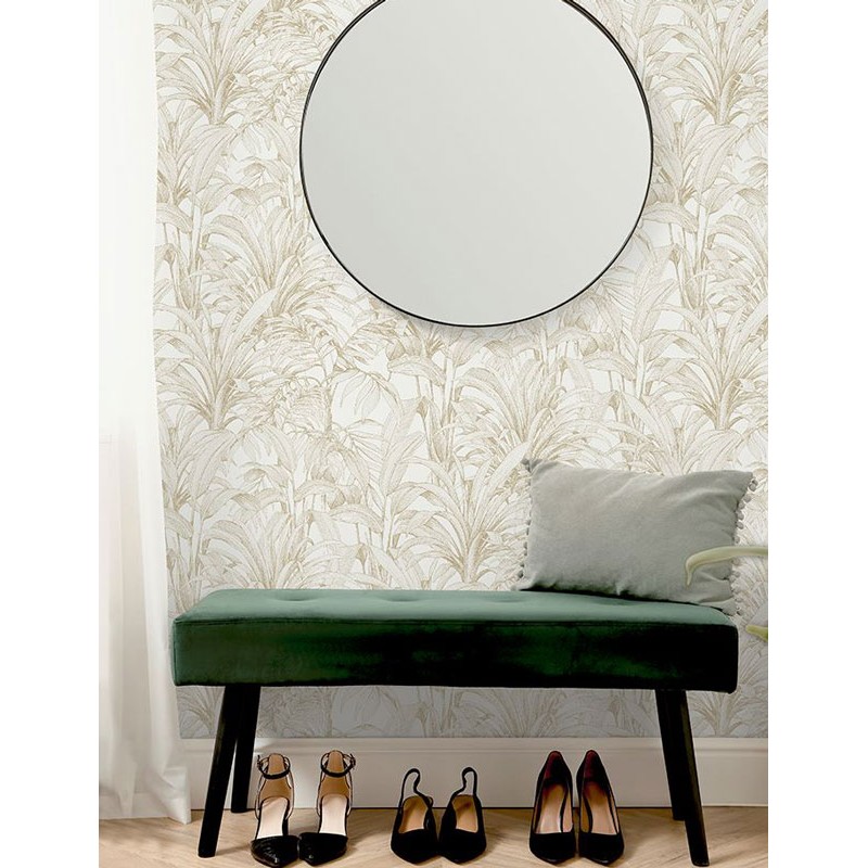 Papel pintado botánico hojas blanco y negro marca Grandeco, colección Asperia. Calidad tejido no-tejido lavable, medidas: